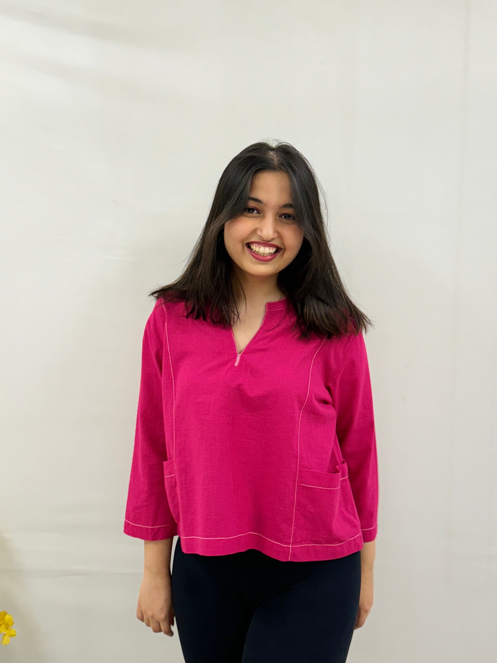 Enhance your wardrobe with our vibrant and versatile angel crop top. Crafted from high-quality, breathable cotton slub fabric, this top offers both style and comfort, perfect for any casual outing or relaxed work environment. The bold magenta color adds a pop of brightness to your ensemble, making it a standout piece.