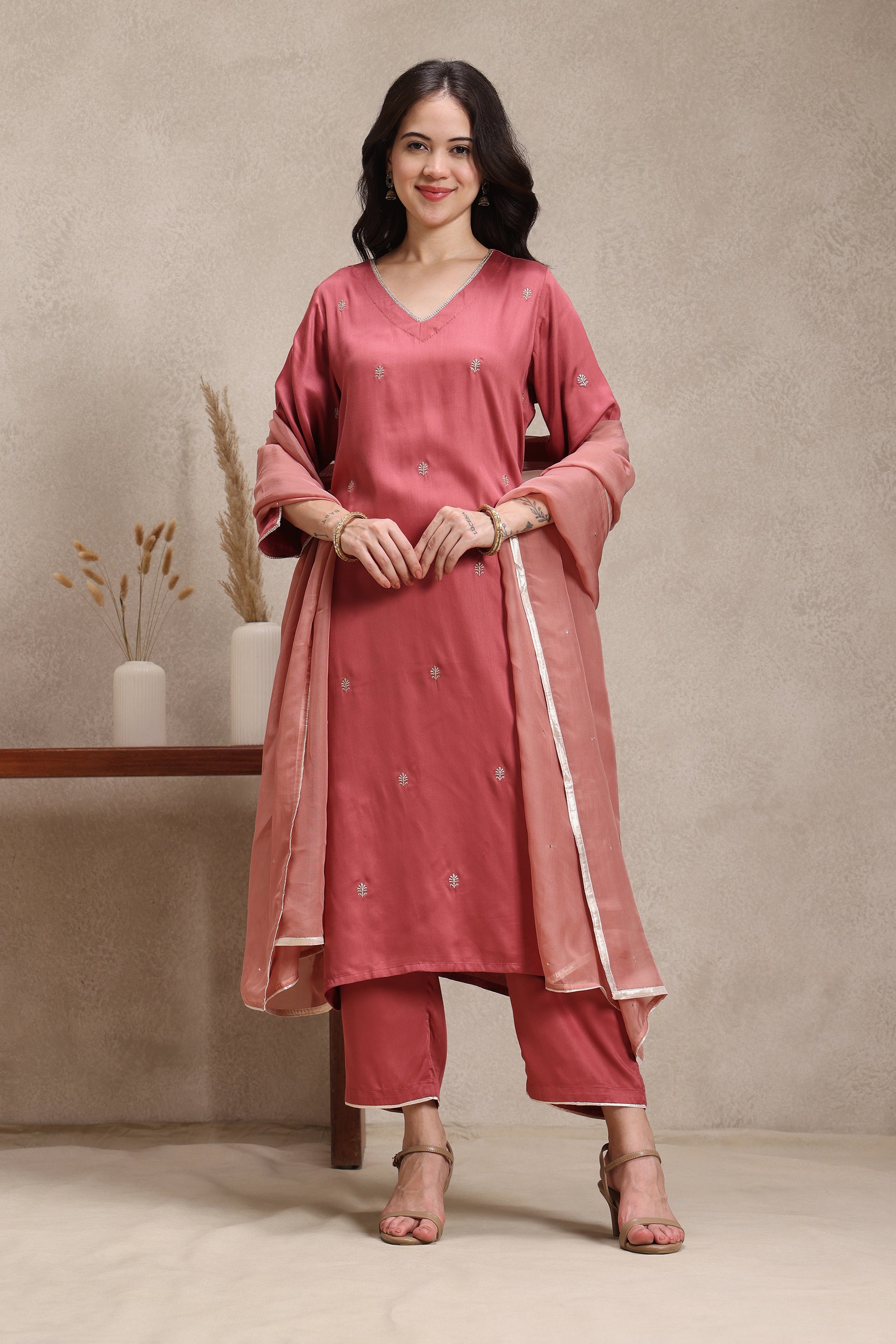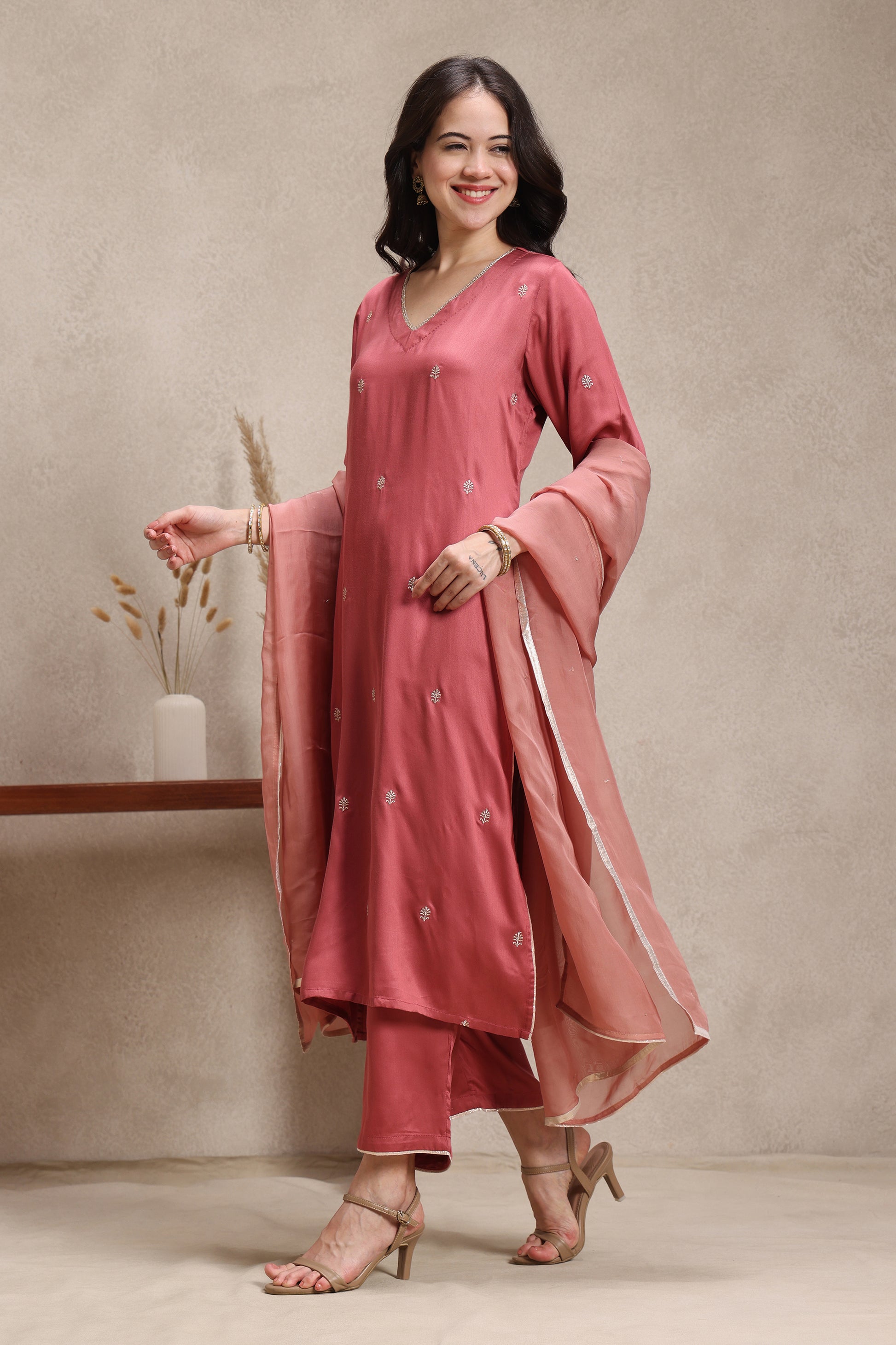 Grace meets minimalism in our Naksh Set. Crafted in a serene hue, this three-piece ensemble features a straight-fit kurta adorned with delicate embroidered butis, paired with tailored pants and a sequined dupatta with subtle zari edges. A timeless outfit that flows effortlessly from festive gatherings to evening soirées. Perfect for festive wear, family get-togethers & special occasions✨