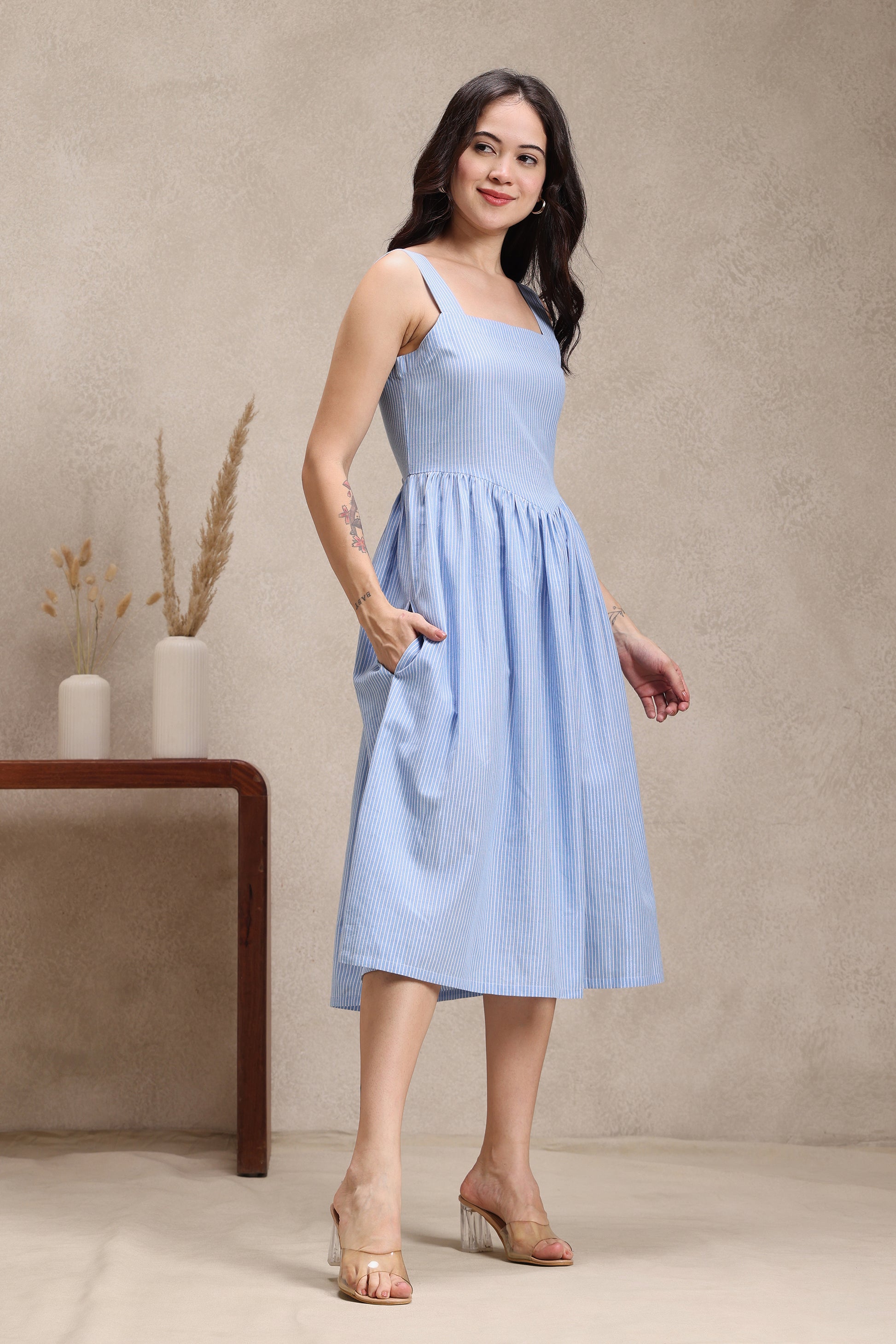 Breezy chic Tara Dress is your everyday sunshine outfit. Crafted in soft cotton with delicate stripes, it features a flattering square neckline and a flowy silhouette that moves with you. Perfect for brunches, beach strolls, or just those “I want to look cute but comfy” days. 🌿✨